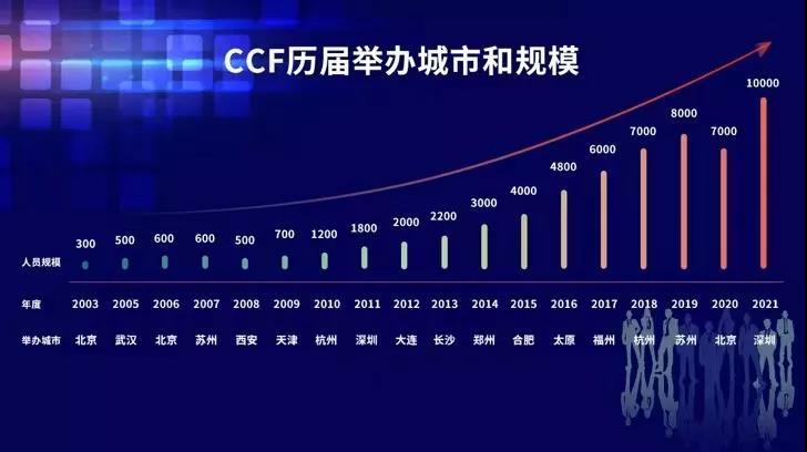 大会规模的逐年攀升,除了品牌影响力与日俱增外,还和大会安排的技术论坛数量、范围、质量逐年不断突破和推陈出新有关。2021年,CCF根据大会在深圳召开的情况,提出了本届大会规模超过1万人的目标(没有疫情防控要求的情况下),这就要求本届大会的技术论坛必须超越过去。
