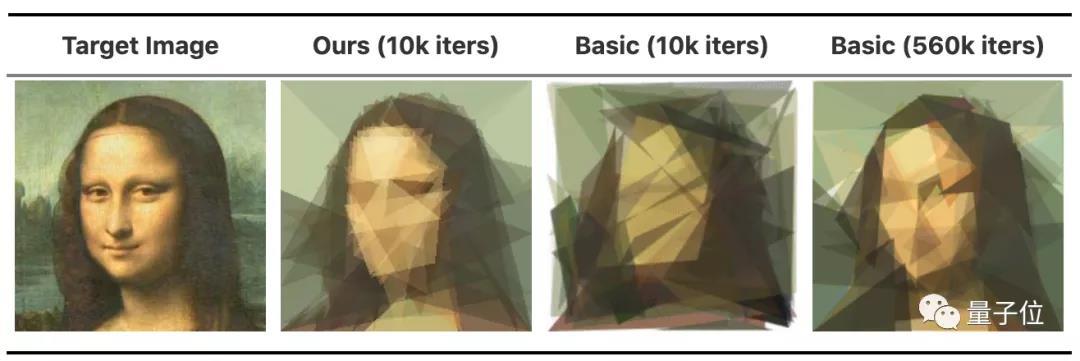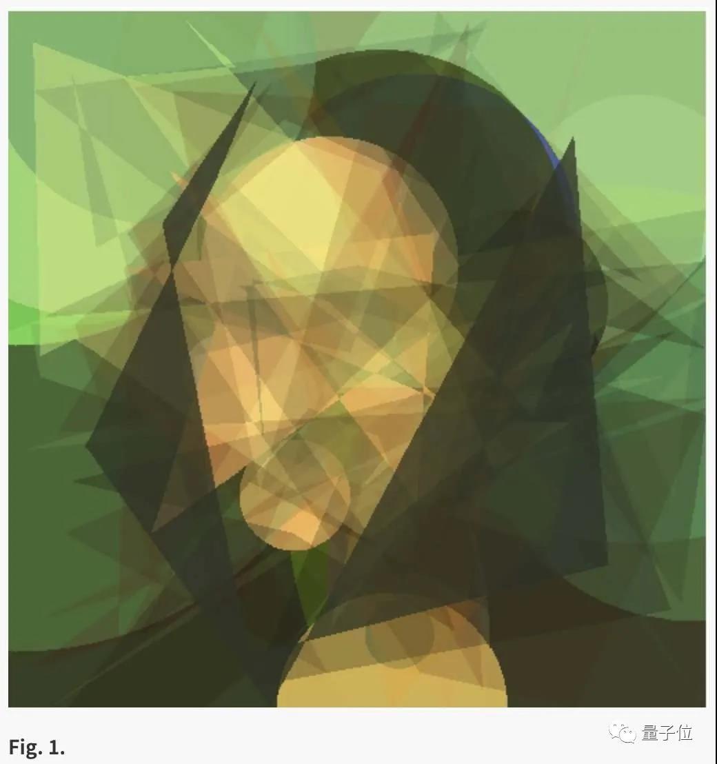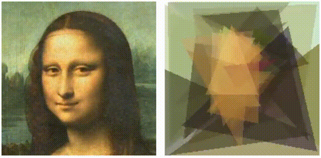 这不,用50个三角形、迭代10000次后,后现代抽象版蒙娜丽莎诞生了。