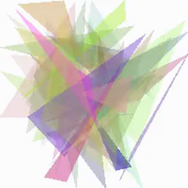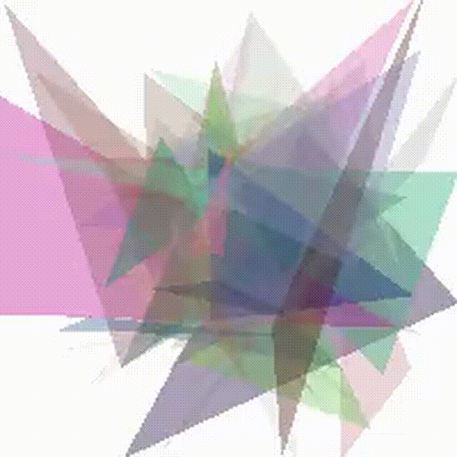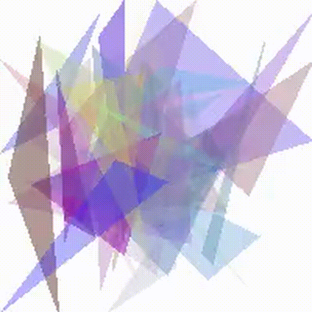 具体来看,在最初始时,ES算法会以三角形的坐标、RGBA值作为参数,在画布上随机给出一些三角形。