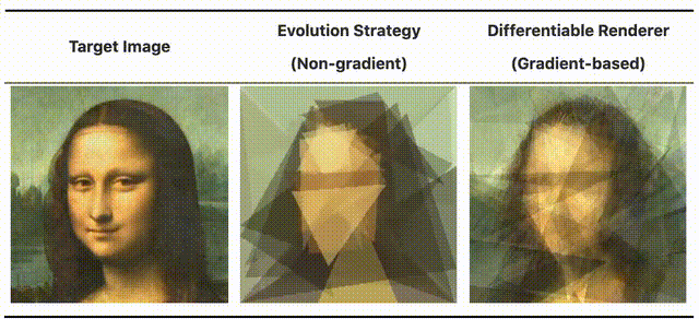同时,与基于梯度的渲染方法对比,ES算法的表现也可圈可点。