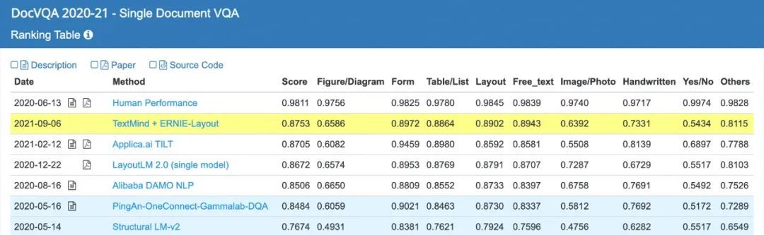 ERNIE-Layout 登顶文档智能国际权威榜单 DocVQA
