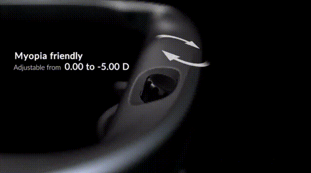 这副AR眼镜自带屈光度调节,0-500度范围内的近视用户,都可以通过旋转镜架上的旋钮,匹配自己的度数: