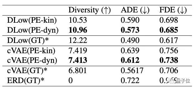 结果是DLow(PE-dyn)模型的多样性最好,超越了动捕数据集下的训练。