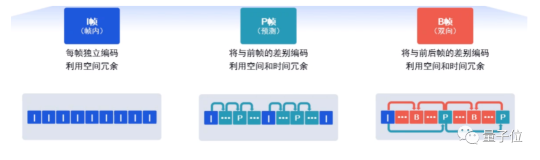 目前的编解码大多集中在I帧(帧内预测)和P帧上,而B帧则是同时利用I帧和P帧的双向运动补偿来提升压缩的性能,在H.265中正式支持(H.264没有)。