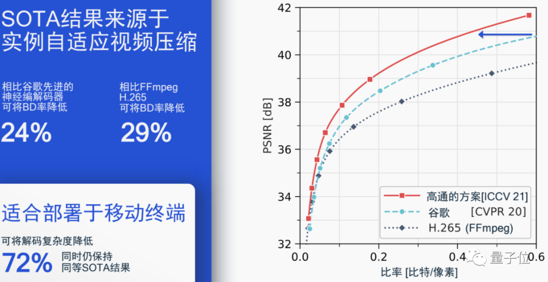 针对编解码器标准内卷的情况,高通也想到了用AI做自适应算法,来像“过拟合”一样根据视频比特流更新一个模型的权重增量,已经有相关论文登上ICLR 2021。