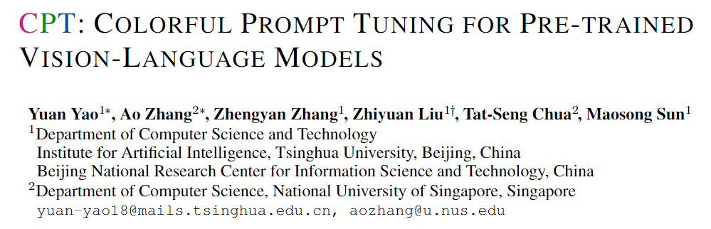 清华大学的研究人员提出了一个新模型跨模态提示调节(Cross-Modal Prompt Tuning, CPT),也可以称为Colorful Prompt Tuning。CPT是一种调整VL-PTM参数的新范式,关键点在于通过在图像和文本中添加基于颜色的共同参照标记,视觉基础可以重新形成填补空白的问题,最大限度地减少预训练和微调之间的差距。