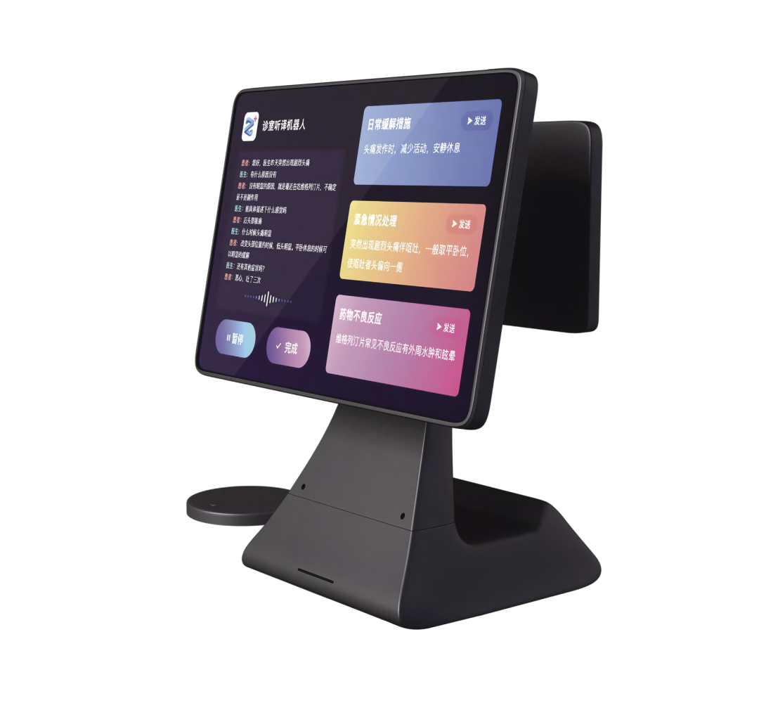 A:首先,我们会根据用户的要求在一些医院内部做私有化部署,进行私有化学习。此外,我们也会提供公有云服务,用于处理脱敏后的数据。其实我们在医院内部做私有化的学习。在保证数据不出院的情况下,我们尽量抽取出知识,构建出模型,相关活动都完全符合数据安全法的要求。在录音之前,我们会征求患者的意见,让其在设备上签署知情同意书。该设备可以帮助患者记录医嘱,在手机上回放;也可以让医生勾选可以发送给患者的录音回放,过滤掉一些不便发送的信息。