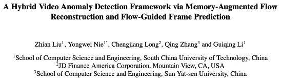 本文分享 ICCV 2021 oral 论文『A Hybrid Video Anomaly Detection Framework via Memory-Augmented Flow Reconstruction and Flow-Guided Frame Prediction』,由华工&京东&中大联合设计重构+预测方法,双管齐下提升视频异常检测性能。