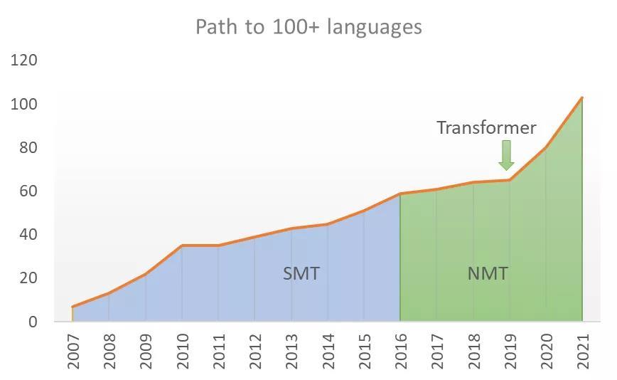 多年来,微软已将世界上诸多常用的语言和方言添加到了微软翻译的系统中。而随着人工智能技术的发展,微软研究院开始采用神经机器翻译(NMT)技术,将所有机器翻译系统迁移到了基于 Transformer 架构的神经模型上,因此翻译的流畅度和准确性获得了大幅提升。