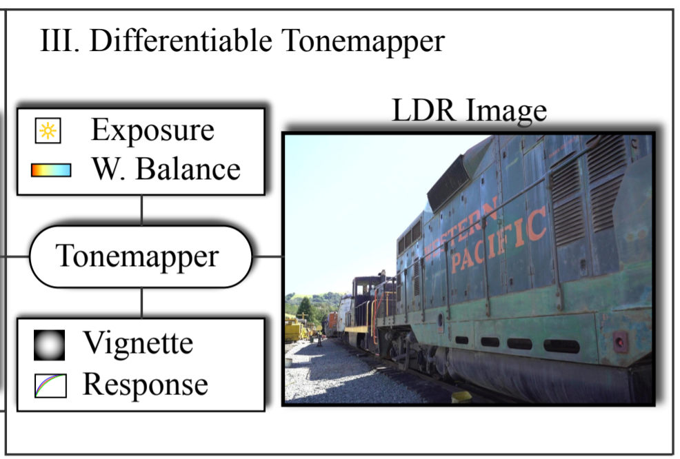 管道中的最后一步(图2右侧)是可学习的色调映射操作符,它将渲染的HDR图像转换为 LDR。