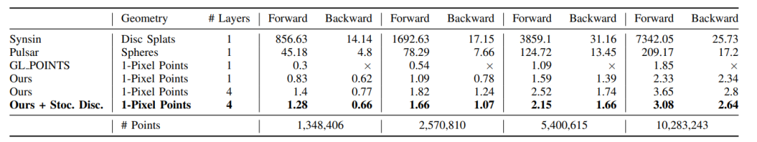 表I:RTX 2080 Ti上1920×1080图像的正向和反向渲染时间(以毫秒为单位)。