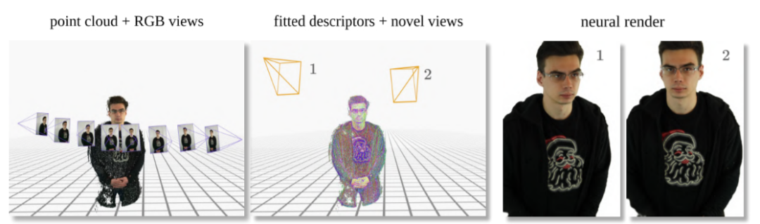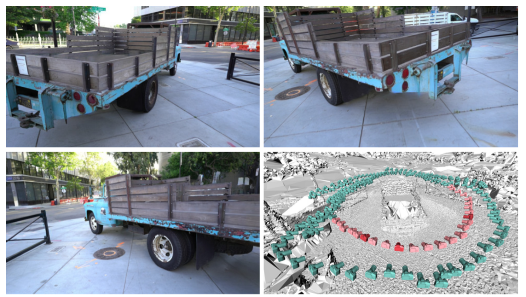 只需要输入点云和相机参数的初始估计,就可以输出由任意相机角度合成的图像,360度旋转都不是问题。