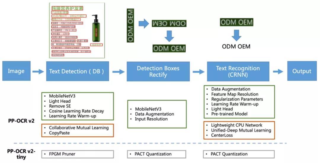 全新升级的 PP-OCRv2 版本,整体框架图保持了与 PP-OCR 相同的 Pipeline,如下图所示: