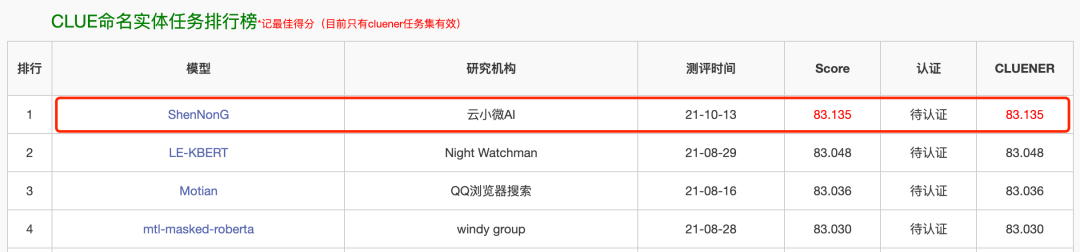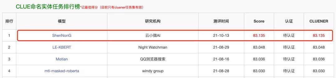 同时,“神农”登顶CLUE阅读理解、NER榜单,刷新业界记录。