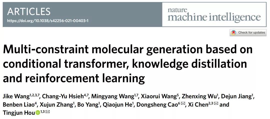 介绍一篇来自浙江大学侯廷军教授课题组、武汉大学陈曦教授课题组、中南大学曹东升教授课题组和腾讯量子实验室联合发表的一篇文章。该文章提出了多约束分子生成新方法MCMG,通过结合知识蒸馏(Knowledge Distillation)、条件 Transformer(c-Transformer)和强化学习(RL)来生成满足多个约束的分子。