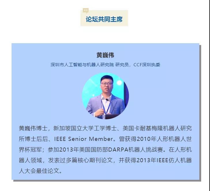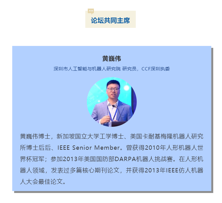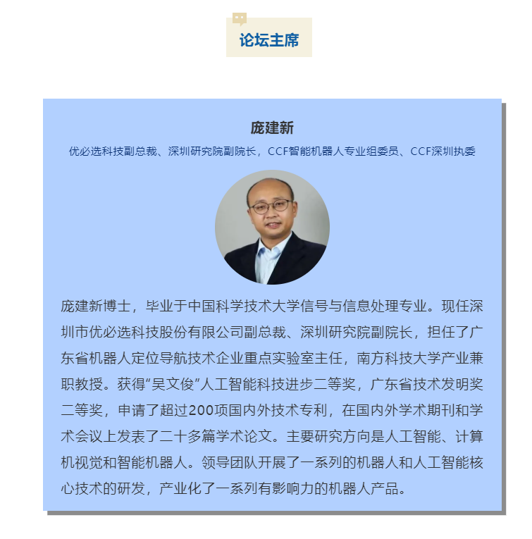 在产学联动中,CNCC在今年新设置了仿生机器人论坛,将于10月28日13:00-16:00在深圳国际会展中心CC105C召开。本论坛由深圳市优必选科技股份有限公司副总裁兼深圳研究院副院长庞建新博士以及深圳市人工智能与机器人研究院黄巍伟博士共同担任此次论坛的主席,邀请到了中国科学院深圳先进技术研究院、南方科技大学,香港中文大学(深圳)等科研院校的著名学者,以及腾讯、优必选科技等高科技企业的产业专家进行深度解析,分享多种仿生机器人的发展现状,共同把脉仿生机器人的应用前景。