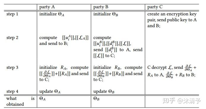 step4:C解密梯度和损失后回传给A和B,A、B去除掩码并更新模型。