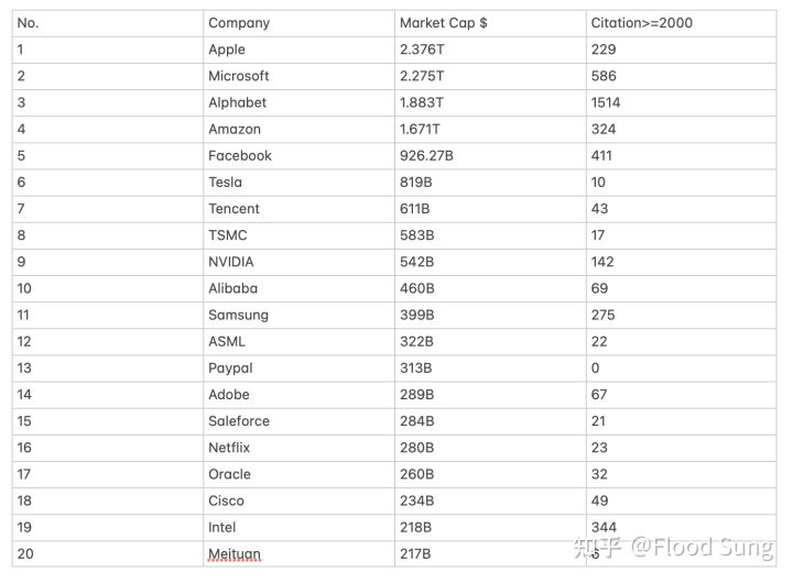 带着这些问题,本文作者通过搜索Google Scholar上各大科技公司的高学术水平技术人员数量,来观察他们的科研水平进展,对比国内外科技公司的科研实力区别,讨论科研水平与市值的关系、科研水平对科技公司的意义等话题,并对未来科研实力的发展,提出了自己的思考。