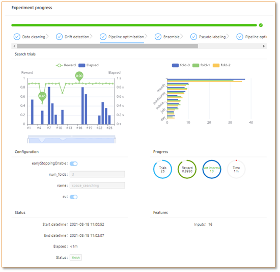 「我们引入了很多方法来降低评估成本,比如低保真预热、同路径数据链路缓存、模型训练的 Pruning 等等。HyperGBM 通常只需要人工单次训练时间的 10 倍左右的时间就可以完成整个 AutoML 的过程,从总成本上看大大优于人工建模。」杨健说道。