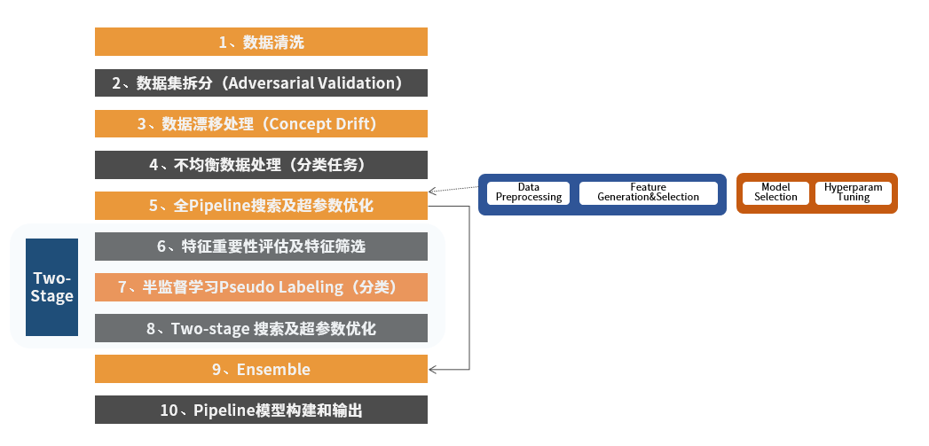 在这里,工程师们把 AutoML 的过程抽象成由一系列 Step 组成的实验,通过数据管道串联,一个实验的 Step 可以组装,数据不均衡、数据漂移等问题都有专门的 Step 去处理,而且随时可以针对不同场景的挑战扩展 Step。
