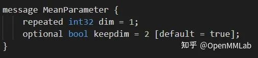 一般支持 caffe 的推理框架都是在原生 caffe 的基础上自己额外定义了一些算子(有的还会修改一些原生 caffe)的算子,这些改动都能体现在caffe.proto上:例如下图所示例子就是Mean(PartialMean)在 caffe.proto 中的定义。使用这样的 proto 文件和 protobuf,才能生成带 Mean 算子的 caffe 格式模型(.prototxt, .caffemodel)。