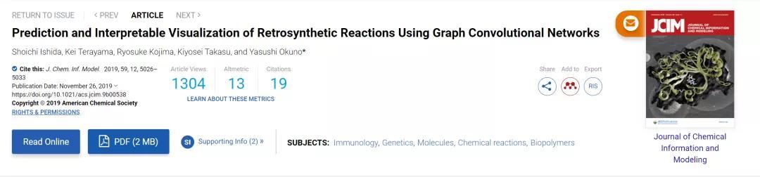 本文介绍的是Journal of Chemical Information and Modeling上的文章 "Prediction and Interpretable Visualization of Retrosynthetic Reactions Using Graph Convolutional Networks"。