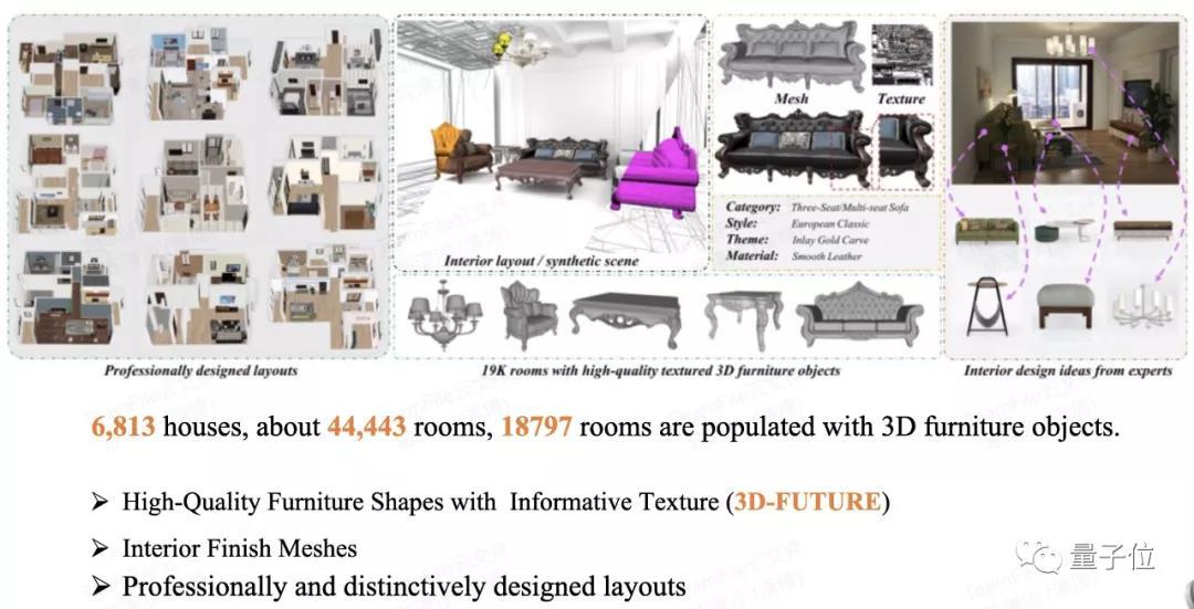 比如新零售领域数据集,就有阿里淘系技术开源的家居行业数据集3D-FRONT,包含超过20,000张高清室内场景专业设计渲染图,可用于场景布局预测与生成等研究课题。