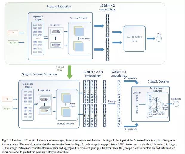 结果:在本研究中,我们开发了一种从基因表达图像中识别基因调控相互作用的新方法,称为ConGRI。该方法的特点是采用对比学习方案和深度孪生CNN架构,自动学习表达式图像的高级特征嵌入,然后将嵌入的内容输入人工神经网络,以确定是否存在交互。我们将该方法应用于果蝇胚胎发生数据集,并识别了眼睛发育和中胚层发育的grn。实验结果表明,ConGRI在早期眼发育和中胚层发育的grn中,准确率分别达到76.7%和68.7%,大大优于以往的传统方法和深度学习方法。研究还揭示了果蝇眼睛发育的一些主要调节因素。