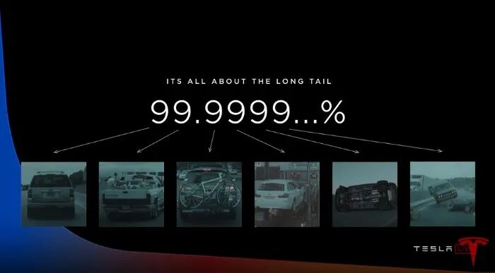 在 Andrej Karpathy 2019 年的演讲中,他描述了如何有效地获取和标记从特斯拉车队收集的大量数据,以解决通常是边缘情况(分布的长尾)的不准确问题。