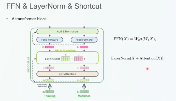 在每一个 Transformer 模块中,我们首先将自注意力机制的输入和输出通过 Shortcut 连接相加,接着我们将该值作为前馈网络层的输入,并再次通过 Shortcut 连接对前馈网路的输入和输出求和。通过迭代式地累加,我们可以实现对 Transformer 模型的扩展。同时,FFN 层的维度也可以被拓宽或缩小。