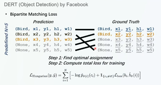 DETR 成功的主要原因是它使用了二部图匹配损失函数。作者首先将 Groud Truth 中的检测框的数量与预测的数量对齐,进而找到最优的二部图匹配方案,再根据分类和检测框坐标构建二部图匹配损失。与 Faster-RCNN 相比,在参数量相近的情况下,DETR 的性能有显著的提升。