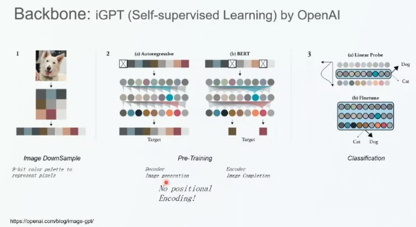 OpenAI 于去年提出了自监督学习模型 iGPT,该模型的工作流程分为三步: