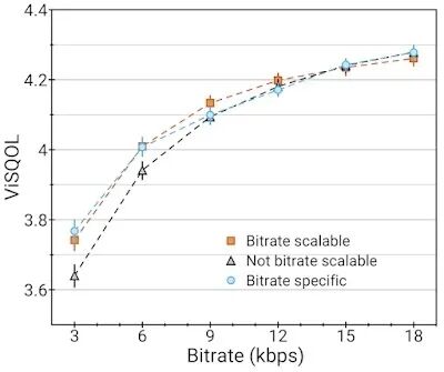 由于传输音频时网络条件可能会发生变化,理想情况下,编解码器应该是“可伸缩的”,这样它可以根据网络状态改变其比特率。虽然大多数传统编解码器都是可伸缩的,但以前的可学习编解码器需要专门针对每种目标比特率进行训练和部署。