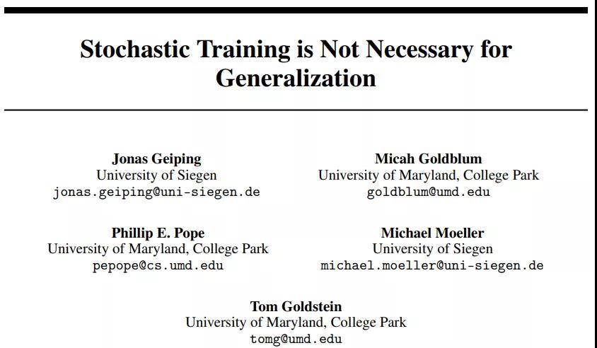 近来机器学习模型呈现出一种向大模型发展的趋势,模型参数越来越多,但依然具有很好的泛化性能。一些研究者认为泛化性能得益于随机梯度下降算法(SGD)所带来的随机噪声。但最近一篇 ICLR 2022 的投稿《Stochastic Training is Not Necessary for Generalization》通过大量实验证实全批量的梯度下降算法(GD)可以达到与 SGD 不相上下的测试准确率,且随机噪声所带来的隐式正则化效应可以由显式的正则化替代。