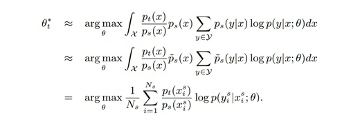 Reweighting:这种方法的核心思想是给每条训练数据赋予一个权重,这个权重的大小与目标领域的相似度成正比。这种方法目前还很不成熟,这方面的 paper 只见过这篇,文中提出的方法需要目标领域有的 few shot 数据,权重是通过先训练一个目标领域的分类器计算的。