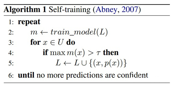 Pseudo-labeling:即虚标法,这种方法使用类似于 self-training, co-training and tri-training 等 Bootstrap 方法来迭代地标注数据 训练模型。