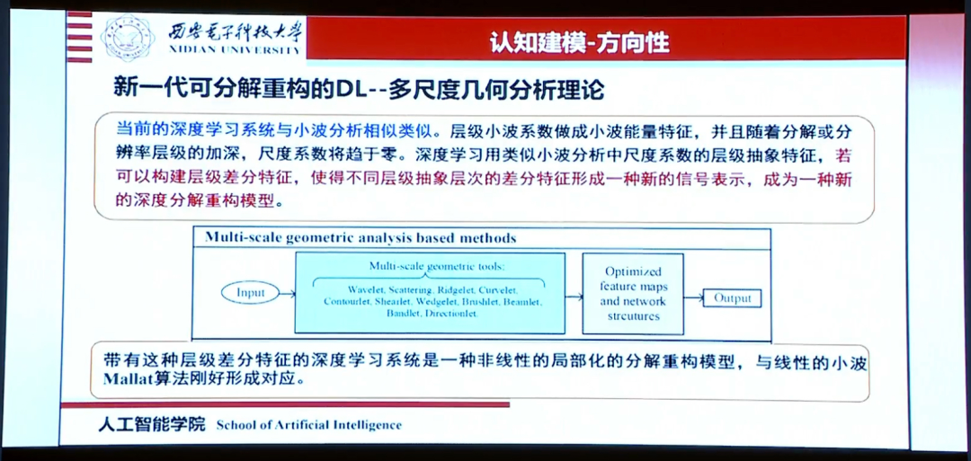 此外,我们还利用20多年前的多尺度几何理论,建立了新一代可分解重构的深度学习理论。我们不仅能构建层级的差分特征,也能使不同层级抽象层级的差分特征形成一种新的信号表示,成为一种新的深度分解的重构模型。上述这些工作都是基于多尺度几何与深度学习的研究历程和发展惯性展开的。