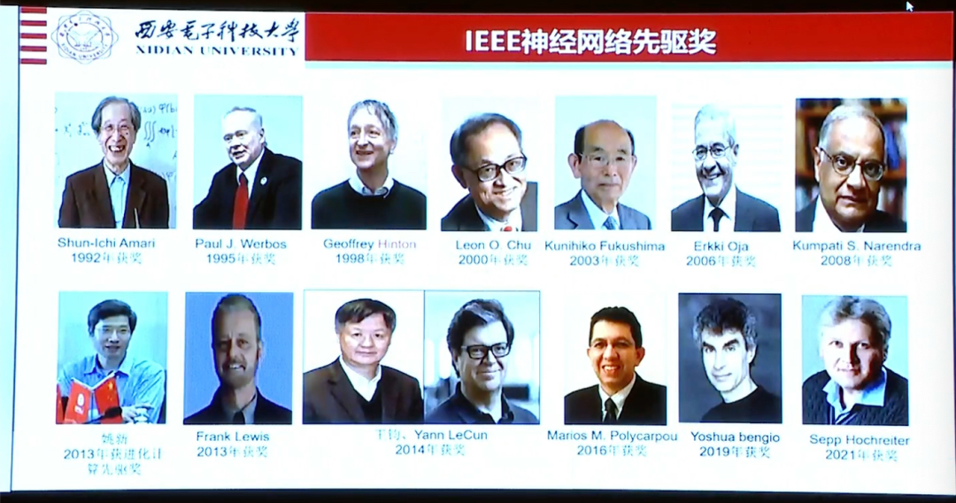 Fukushima是神经认知的提出者。Oja是芬兰的科学家,也是“子空间”的提出者。姚新老师对进化计算的贡献非常巨大。王钧老师也对神经网络的研究作出了重要贡献。LeCun在2014年因为其1990-1992提出的卷积神经网络而获奖;之后Bengio在2019年获奖。而今年的获奖者是广东工业大学的刘德荣老师,他也是前任IEEE Trascations on Neural Networks, TNN的主编。