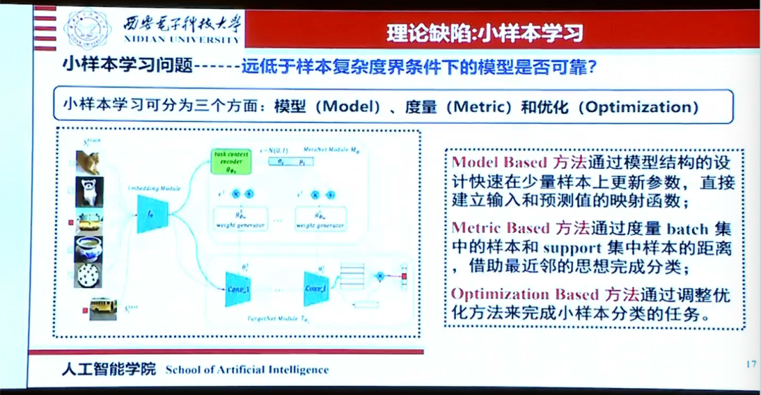 小样本学习所面临的问题可以分为模型、度量和优化三个方面。