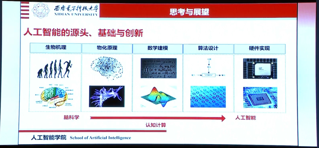 我们再次回过头来看人工智能的源头、基础和创新。这是一项需要从源头上突破卡脖子技术的研究方向,我们要将生物机理、物化机理、数学机理、算法设计和硬件环境结合起来,来实现从脑科学到认知计算,再最终到人工智能的良性闭环。