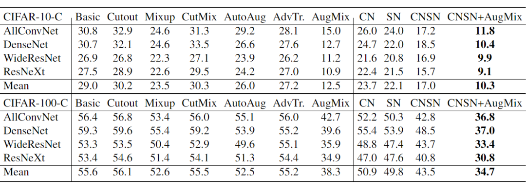 CN+SN 的方法在绝大多数 backbone上的效果好于现有的数据增强的方法,而且 CNSN 和他们是正交的,CNSN 不依赖于任何形式的图像操作,将 CNSN 与 augmix 结合之后效果来到了目前的 SOTA。文中还有更多数据集以及 numerical 的实验,这里不再赘述。
