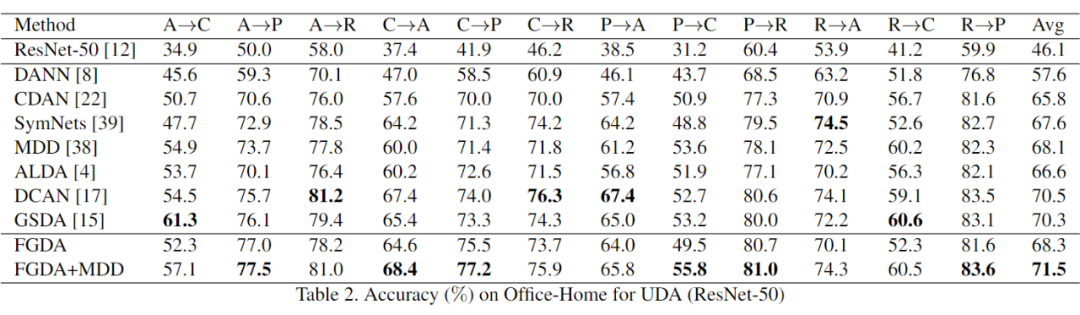 首先 FGDA 与传统减少 domain discrepancy 的方法结合摸到了 sota。虽然 FGDA 单独拿出来效果并没有想象的那么理想,但是 FGDA 毕竟是和现有方法正交的。