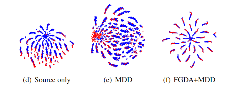 从 t-sne 的结果来看,加了 FGDA 之后特征对齐确实更好的对齐了。