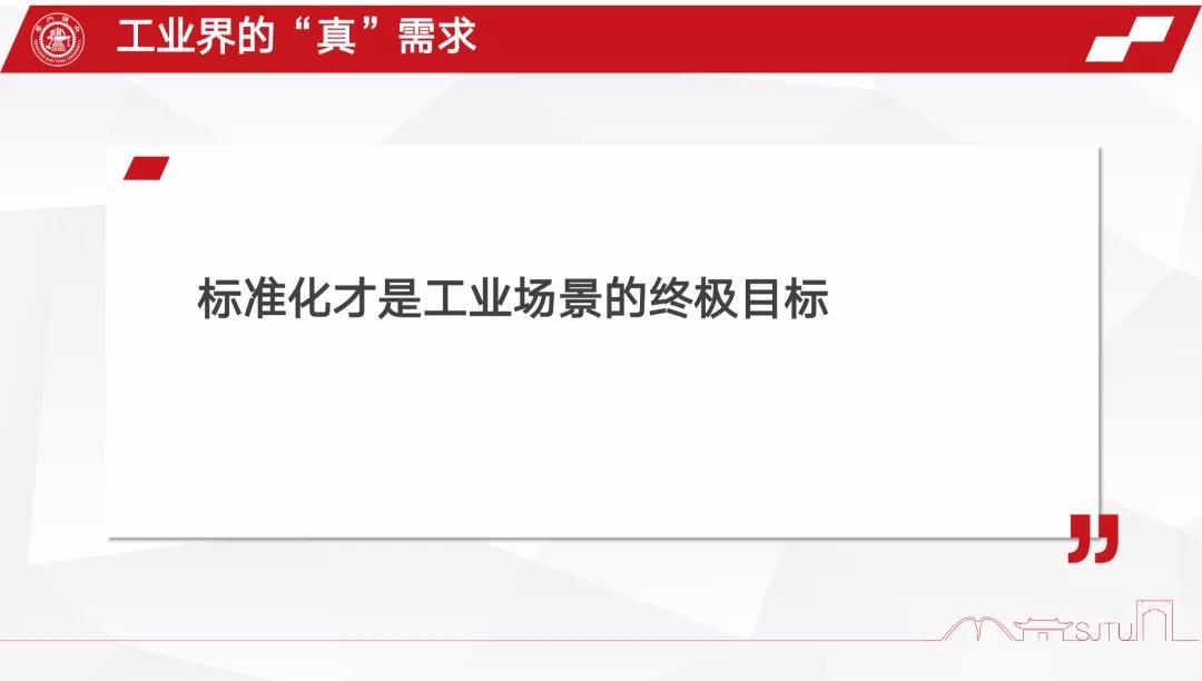 其实对工业界来说,它真正需要的东西也是标准化。因为没有标准化的东西,对工业来说是价值不大的,因为做的都是单点项目,在工业上铺不开。
