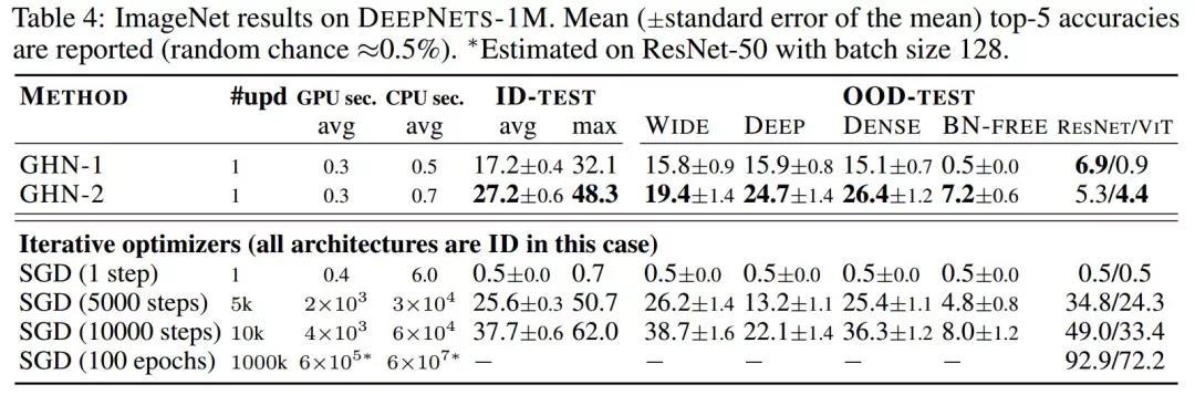 相比之下,GHN-1 的性能分别与仅 ~500 次和 ~2000次(未在表 4 中展示)迭代相似。