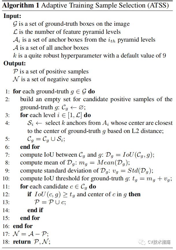 受此启发,论文提出了一种新的自适应训练样本选择 (Adaptive Training Sample Selection, ATSS),以根据目标特征自动选择正样本和负样本。它弥补了anchor-based和anchor-free检测器之间的差距。
