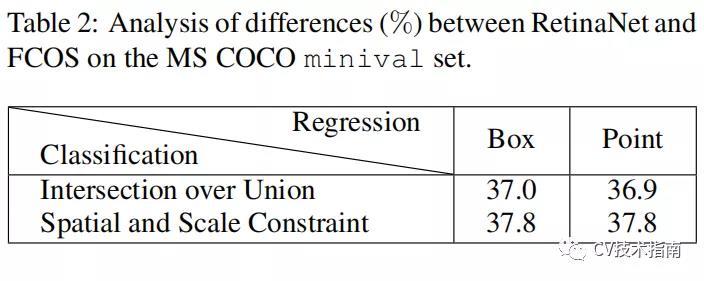 根据上面表2结果所示,当RetinaNet和FCOS使用相同的正负样本选择策略的时候,两者并没有明显的差别,这表明回归的起点并不是两个方法的本质区别。