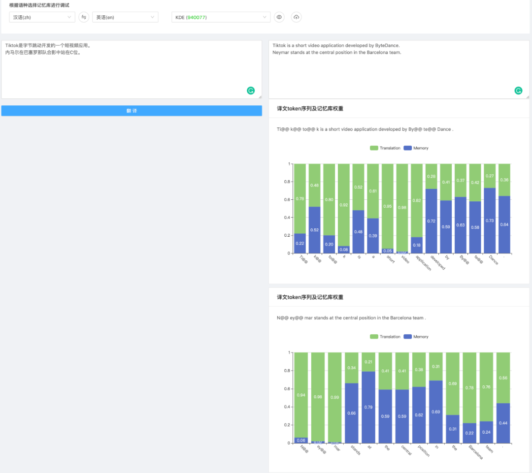 如 图10 所示,由于训练数据中没有出现过“字节跳动”这种新兴实体,以及“C位”这类新词,翻译系统对它们的翻译效果是不好的。