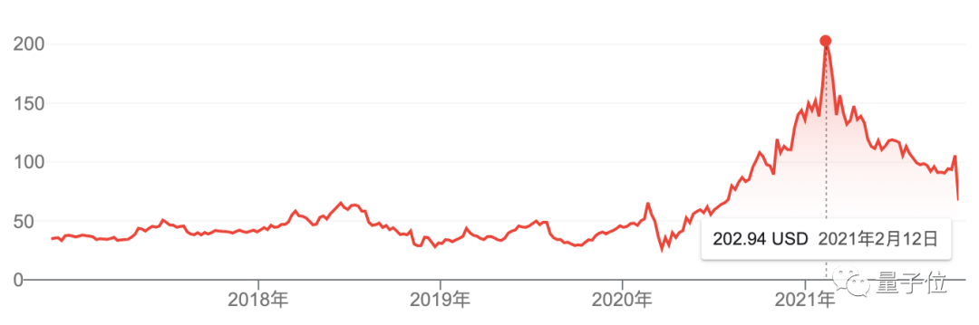 进入2021年后,股价已经冲上202.94美元的巅峰,较2019年几乎翻了6倍。