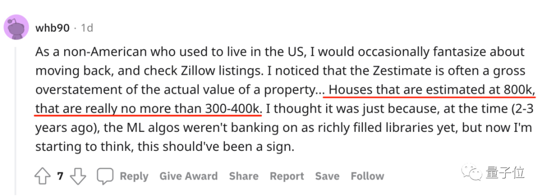 有网友就举例说,他曾经注意到Zillow估价为80万美元的房子,其真实价格可能只有30-40万。